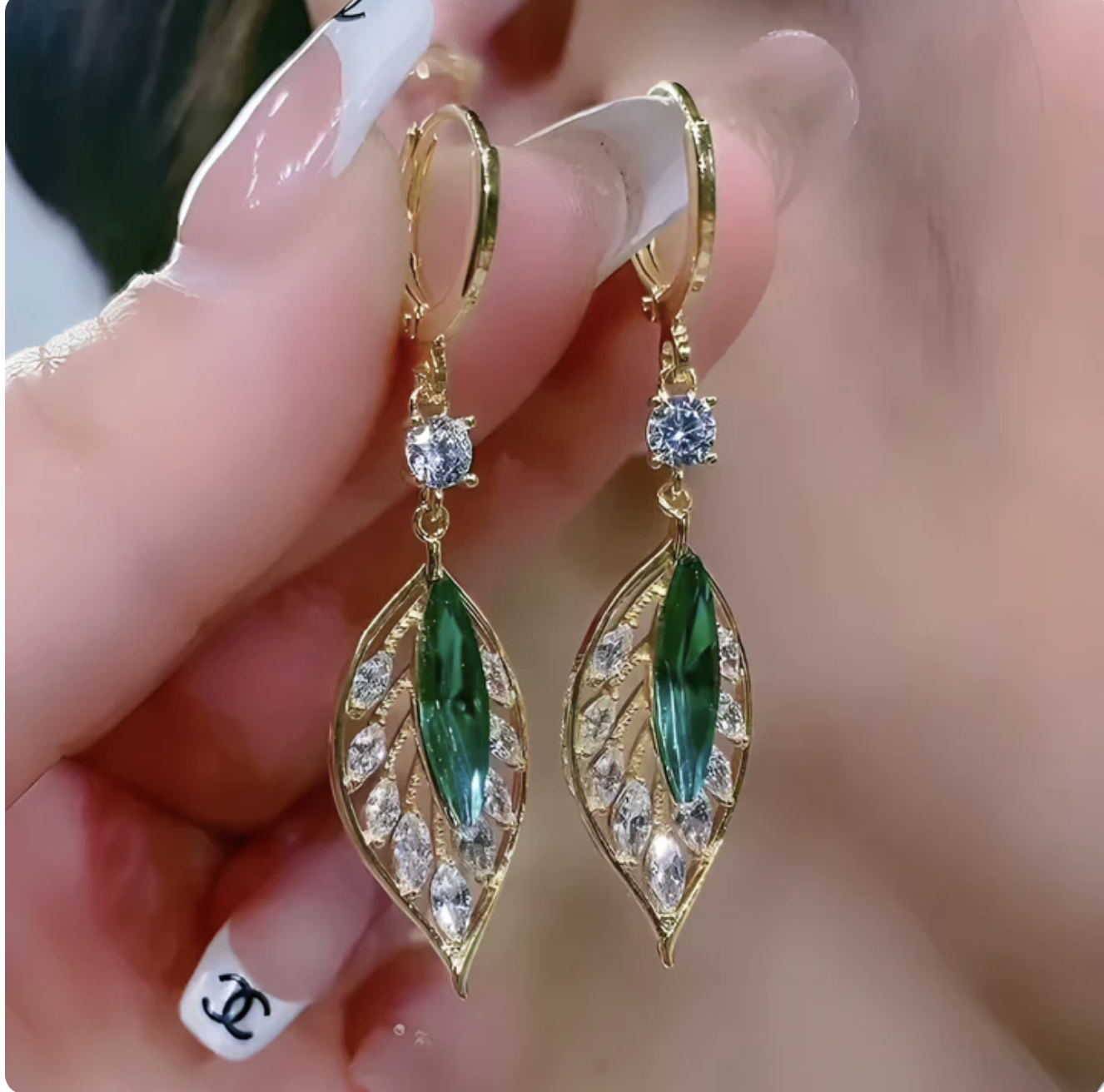 Elaborados con meticulosa atención al detalle, estos pendientes presentan delicados motivos de hojas de color verde esmeralda que añaden un toque de sofisticación a cualquier conjunto. Fabricado con materiales de alta calidad.